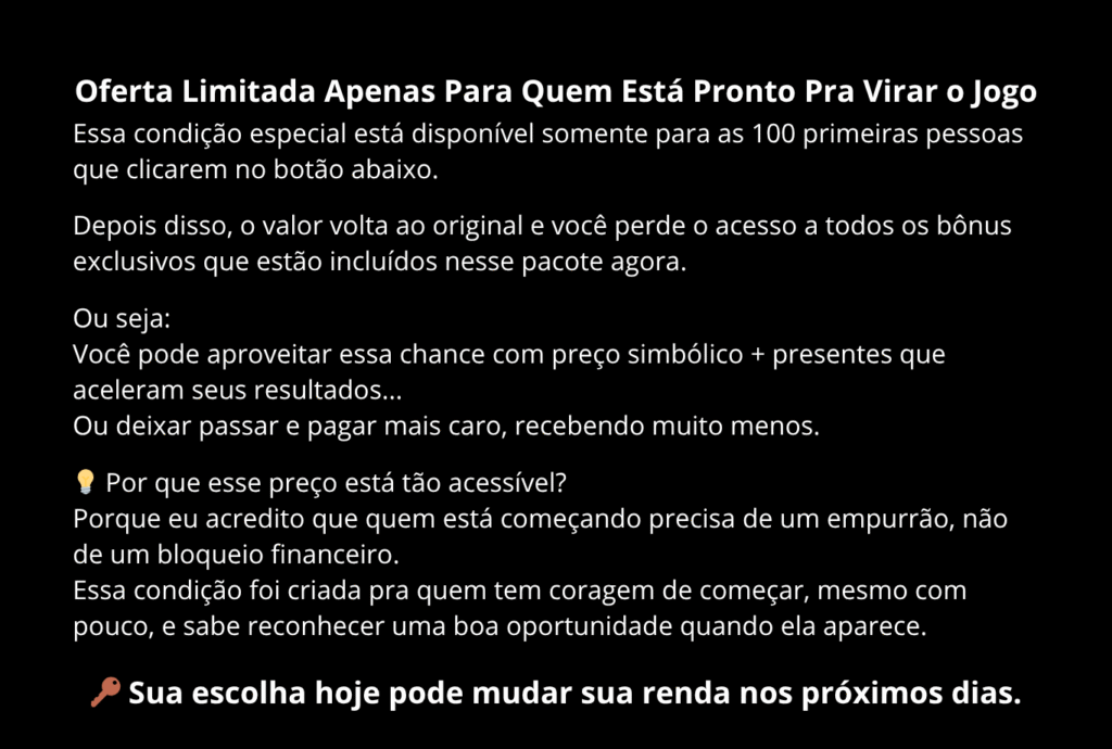 🔹 Passo 3: Aplica truques visuais e técnicas de apresentação invisíveis, que despertam desejo imediato — mesmo sem você precisar aparecer, gravar vídeos ou sair de casa.