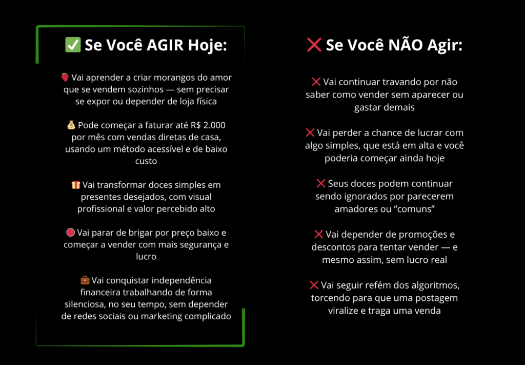 🔹 Passo 1: Você aprende a preparar a cobertura certa — aquela que transforma um morango comum em algo visualmente irresistível, com brilho e aparência profissional, sem gastar mais por isso.